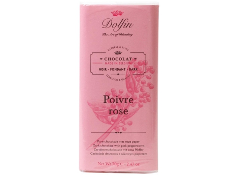 JUODASIS ŠOKOLADAS SU ROŽINIAIS PIPIRAIS Dolfin, 70g