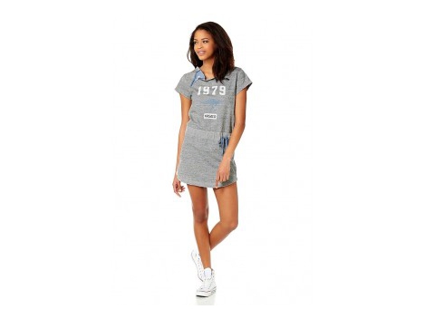 Laisvalaikio sportišką išvaizdą visai iki šiol. Rafinuotas, mini suknelė iki kengūrų į palaidinukė stiliaus trumpomis rankovėmis ir raišteliu juosmens. Didelis vintage, logotipas spausdinti ant priekio. Asimetriškas užtrauktukas su paslėpta logo užrašu ant apvalia iškirpte. Suapvalinti apvadą. Labai figūra hugging formos. Ilgis apie 82 cm. Minkštas sweatwear iš 50% poliesterio / 50% medvilnės. Pašiurkštinamas viduje.
