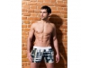 Maudymosi vyrams su įdomiu dizainu. Baigtas vertikalus, išspausdintas diržą. Tamsiai mėlyna su pilku akcentu. Audinys minkštas ir elastingas. Be elastinio juosm...