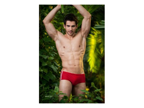 Maudymosi vyrams su įdomiu dizainu. Baigtas vertikalus, išspausdintas diržą. Tamsiai mėlyna su pilku akcentu. Audinys minkštas ir elastingas. Be elastinio juosm...