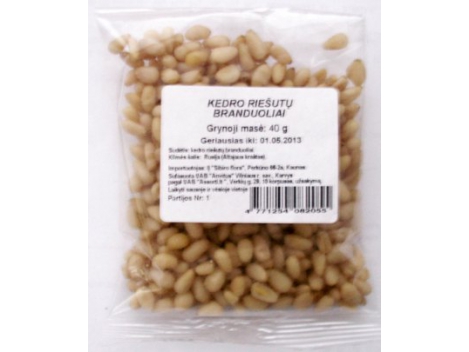 Kedro riešutų branduoliai, 40gParagaukite kedro riešutėlių! Pasigardžiuokite nepakartojamu, nepamirštamu kedro riešutų skoniu. Riešutai ne tik skanūs, bet ir nepaprastai maistingi.Kedro riešutai yra patys švelniausi, nes juose nėra ląstelienos, jie lengvai virškinami. Kedro riešutuose yra baltymų, kuriuos lengvai ir greitai įsisavina žmogaus organizmas (paimta iš http://www.15min.lt). Dar daugiau apie riešutus galite paskaityti šiame straipsnyje >>Sudėtis: kedro riešutų branduoliai