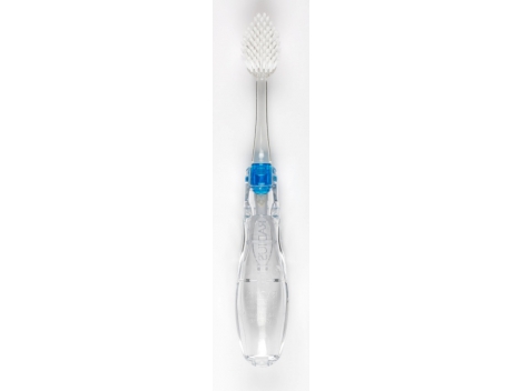 Kelioninis dantų šepetėlis su keičiama galvute, Radius travel soft Visais Radius dantų šepetėlių privalumais galėsite mėgautis kelionėje, turėdami išskirtinio dizaino, kompaktišką RADIUS Tour Travel dantų šepetėlį su keičiama galvute. Pakuotėje yra Soft (minkšta) šepetėlio galvutė, kurioje panaudota 4500 (du kartus daugiau nei įprastai) švelnių lyg aksomas šerelių, išdėstytų vėduoklės principu, idealiai šalinančių apnašas, bei švelniai masažuojančių dantenas. Papildomai galite įsigyti pakeičiamas galvutes atskiroje pakuotėje. Radius dantų šepetėliai pagaminti tik iš natūralių medžiagų nenaudojant naftos produktų, garantuoja malonų valymą ir idealią švarą. Visos dantų šepetėlyje panaudotos medžiagos sertifikuotos FDA (Amerikos maisto ir vaistų priežiūros tarnybos).