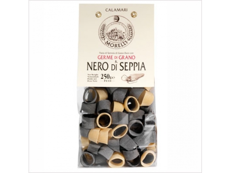 KIETAGRŪDŽIŲ miltų makaronai SU KVIEČIŲ GEMALAIS IR KALMARŲ RAŠALU Morelli, 250g