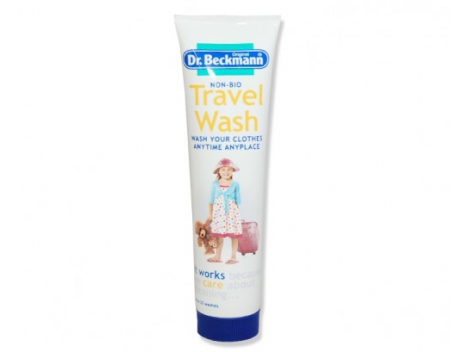 Koncentruotas kelioninis skalbimo gelis Dr. Beckmann, 100 ml, apie 20 skalbimų  Dr Beckmann  ypatingai koncentruotas skalbimo gelis  sukurtas naudotikai Jūs keliaujate arba esate toli nuo namų. - Galite naudoti bet kokio tipo vandenyje - Jis išsaugo ryškias spalvas ir akinantį baltumąskalbiant bet kokio tipo vandenyje.  Naudojimas: Ištirpinkite 1-2 valgomuosius šaukštus kelioninio skalbimo gelio dubenyje su šaltu arba šiltu vandeniu ir skalbkite drabužius. Išskalaukite, kaip paprastai.Ant stipriai suteptų ar dėmėtų drabužių vietų tepkite gelio, lengvai patrinkite ir rūpestingai išskalaukite.