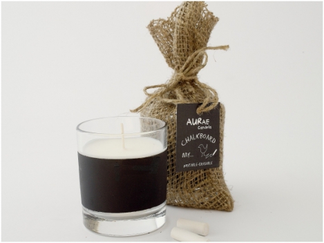 KREIDINĖS lentos efekto Natūralaus sojų vaško žvakės lininiame pakelyje Vanilės ir apelsino aromato “Chalkboard”, 120 g Šios natūralaus sojų vaško žvakės skirtos asmeninei žinutei parašyti. Kreidos (prie žvakės nepridėta) pagalba ant žvakės indelio galima rašyti įvairias žinutes ar piešti meno šedevrus. Po to juos ištrinti, ir vėl iš naujo rašyti ar piešti...Jei norite išskirtinės dovanos, ruošiate staigmeną ar norite tiesiog padėkoti, išimkite žvakę iš maišelio, iliustruokite ją, įdėkite atgal į maišelį ir įteikite. Ši žvakė taip pat gali tapti Jūsų kasdienių žinučių rašymo vieta...Pastaba. Sudegus žvakei, stiklinę galima iš naujo pripildyti vašku arba tiesiog švariai išplauti su muilu ir vandeniu ir suteikti jai kitą paskirtį.