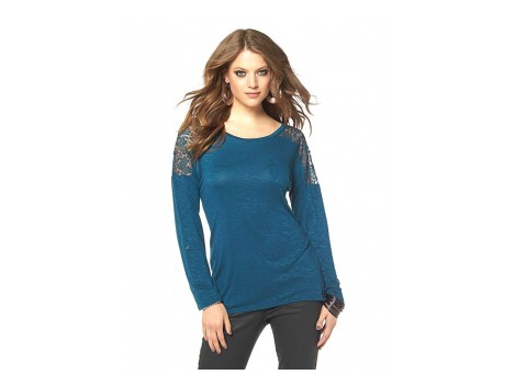 Einfach entspannen und sich wohlfühlen! Ein tolles Basic mit aufwendiger Tigerkopf-Paillettenapplikation vorn. Tiefer Rundhalsausschnitt, langer Arm. Hinten län...
