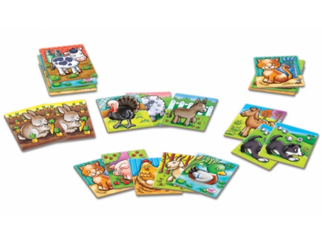 Lavinantis ATMINTĮ stalo žaidimas Ferma, 3-6 m. vaikams ORCHARD TOYS (028) ORCHARD TOYS žaidimai moko vaikus bendrauti, dalintis ir žaisti kartu. Šis žaidimas taip pat lavina asmeninius ir socialinius gebėjimus. Vaikai išmoks greičiau skaičiuoti.Skirta 3-6 metų vaikams. Gali žaisti 2-4 žaidėjai. Komplektą sudaro: 48 kortelės.Pasiruošimas: visos koretelės išdėliojamos apverstos ant stalo visiems žaidėjams.Žaidimo eiga: jauniausias žaidėjas pradeda žaidimą. Atverčia pirmąją kortelę iš savo krūvelės ir padeda ant stalo vidurio. Kiekvienas žaidėjas, pagal laikrodžio rodyklę, daro tą patį. Jeigu kuriuo nors metu žaidėjai pastebi dvi korteles, kurios sutampa, jie surinka "SNAP" ir pasiima krūvelę, kurią pasideda po savo jau turima kortelių krūvele. Jeigu žaidėjui pasibaigia visos kortelės, jam baigiasi žaidimas.Laimi tas, kuris surenka pirmasis visas žaidimo korteles.Šį žaidimą galima žaisti dviem variantais, pavyzdžiui, kaip atminties žaidimą renkant atitinkamas poras.