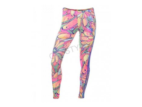 Spodnie damskie firmy Reebok. Przeznaczone do treningu. Wykonane z materiału przyjemnego w dotyku, rozciągliwego, lekko błyszczącego. W pasie szeroki elastyczny...