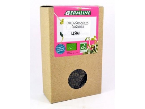 LĘŠIAI DAIGINIMUI, 150g., GERM'LINE Daigintos lęšių sėklos yra pagrindinių, lengvai įsisavinamų maisto medžiagų šaltinis. Šios sėklos suteikia švelniai kartoką skonį salotoms, trintoms košėms arba sriuboms. Turi daug geležies ir vitaminų C, A, B1, B2, B3, B6 ir B12. Daigintuose lęšiuose yra daugiau vitaminų nei virtuose. Lęšių sėklos yra lengviausiai daiginamos sėklos. Mirkymo laikas: 12 val.Daiginimo laikas: nuo 2 iki 4 dienų.