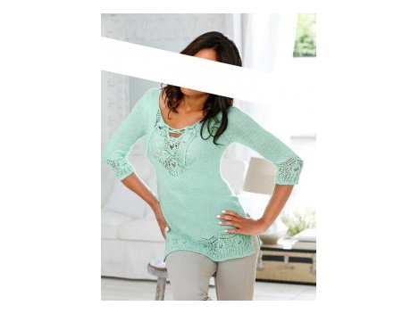 Stilius PUR! Nesenstantis modelis, kuris gali būti derinamas įvairus. Edler Crochetpullover su dekoratyviniu Häkelspitzeneinsätzen. Neklaužada iškirpte plyšiai su varstymu. 3/4 ilgio rankovėmis ir šoniniai skeltukai. Ilgis apytikriai 70 cm. Forma montavimo forma. Minkštas, patogus kvėpuojantis kokybės 100% akrilo.