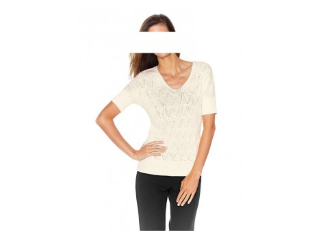 Strickmode für Anspruchsvolle. Bezaubernder Pullover mit raffiniertem Muster mit silberfarbenen Glanzfäden. Kontrastbündchen in Rippenstrick. Länge ca. 56 cm. F...