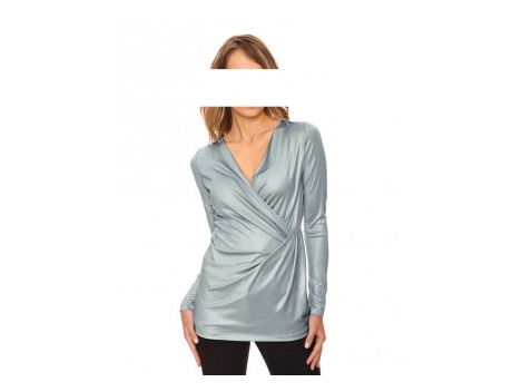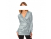Souveräner Kombistyle ganz designerlike inszeniert. Super feminines Shirt in Wickel-Optik mit üppig drapiertem Schalkragen. Elastische Unterbrustnaht, langer Ar...