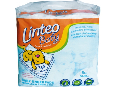 Linteo vienkartiniai kūdikių paklotai 60x60cm, 5 vnt