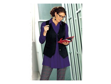Elegantiškas Ilgaamžis Palaidinė pažangiausius stiliaus. Paiešką dygsniuotas ir klostuotas priekyje, siaurėjantis iki hem ir sūpynės-out. Subtilus ruching ant peties. Ilgomis rankovėmis su dviejų mygtukų rankogaliais. Grįžti su smocked ne už puikiai tinka ilgis apie 80 cm juosmens. Minkštas, odos draugiškas audinys su elegantiška satino palaidinių 100% medvilnės. Be nuotraukoje, juoda liemenė.