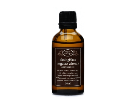 MAITINANTIS argano aliejus VYSTANČIAI ODAI NATUR BOUTIQUE, 50 ml Vystančiai veido ir krūtinės odai, veido ir kūno masažui, vietoje losjono ar kremo po skutimosi, plaukų apsaugai; esant jaunatviniams spuogams, infekciniams bėrimams.Dėl didelio vitamino E ir antioksidantų kiekio pasižymi ypatingai geromis odos senėjimą stabdančiomis ir ją atkuriančiomis savybėmis. Naudojamas odos maitinimui ir plaukų apsaugai. Aliejumi galima praturtinti kremus, losjoną, šampūnus, odos senėjimą stabdančias kaukes. Ypač rekomenduojamas tiems, kurių oda kenčia nuo laisvųjų radikalų susidarymo odoje – rūkymo , kaitinimo saulėje ar soliariume pasekmių. Argano aliejus turi odą stangrinančių ir odos elastingumą gerinančių riebiųjų rūgščių. Labai efektyvus esant jaunatviniams spuogams/aknei, infekciniams bėrimams.Šalto spaudimo. Nerafinuotas. Kosmetinis. Ingredientai: Argania spinosa*Soil Association