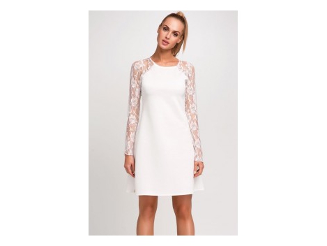 Producent odzieży: MakadamiaMarka odzieży: MakadamiaModel odzieży: M254RodzajOferty: Oferta bieżącaNowość: NIEPłeć kupującego: KobietaSkładnik surowcowy: poliester 100%,Rodzaj dekoltu: okrągłyOpisProducenta: - Stylowa sukienka o lekko trapezowym kroju.- dekolt okrągły- długi koronkowy rękaw- z tyłu subtelne rozcięcie oraz zapięcie na guzik- model wykonany jest delikatnej pianki- sukienka fenomenalnie prezentuje się na sylwetceSkład: 100% poliester.Modelka na zdjęciu ma 172 cm wzrostu.