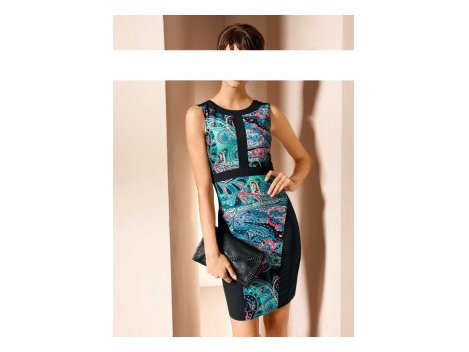 Repräsentativ auf der ganzen Linie. Individuell designtes Kleid mit Wow-Effekt. Im schönen Materialmix aus edel bedrucktem Matt-Satin mit zwei verschiedenen Mot...