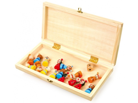 MEDINIS stalo žaidimas LUDO Animals, Small foot, vaikams nuo 5 m. (7358) Klasikinis stalo žaidimas visai šeima. Žaidėjai turi rungtyniauti, kas pirmasis užbaigs žaidimą. Žaidimo taisyklės:kiekvienas žaidėjas pasirenka spalvotąjį kampą (mėlynas, oranžinis, raudonas ar geltonas) ir pastato savo 4 fugūrėles. Metamas kauliukas norint išsiaiškinti, kuris žaidėjas pradės pirmasis. Pradeda, didžiausią skaičių išmetęs žaidėjas, sekantis meta kauliuką pagal laikrodžio rodyklę.Žaidėjas norėdamas pradėti ėjimo manevrą turi išridenti 6, kitokiu atveju negali būti atliktas joks kitas ėjimas. Žaidimo tikslas - visos keturios figūrėlės pasiektų žaidimo centro vidurį. Visos detalės sudėtos į patogią medinę dėžutę, todėl niekas nepasimes!