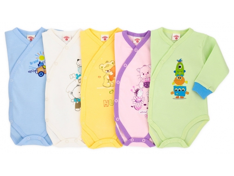 MEDVILNINIAI marškinėliai su pirštinėlėmis ir spaudėmis šonuose, Korlėja (SR-35s) Sudėtis: 100% medvilnė.Dydžiai: 56 - 62 cm