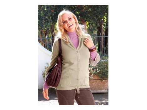 Rundum ein stylisches Fashion-Teil mit maximalem Blickfang-Faktor! Frecher Kurzarm-Style im Strickmix. Mit Kapuze, überschnittenen Schultern und dekorativen Knö...