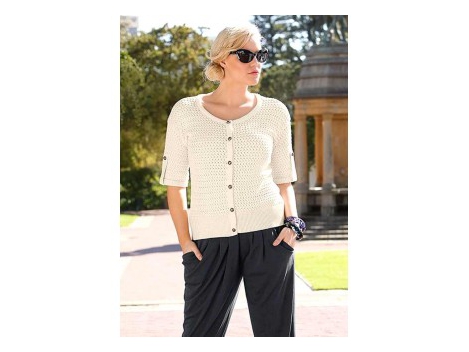Gražus ponios palaidinė su 3/4 ilgio rankovėmis. V-iškirpte, papuoštas su įspūdingas raukiniai, kurie pabrėžti moteriškas savybes. Priekinė asimetriškas siūlės....
