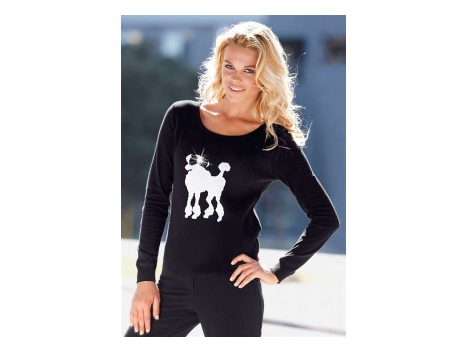 Ein Hauch von Luxus mit Blickfang-Faktor. Verführerisch in Szene gesetzter Pullover. Vorderteil üppig mit unterschiedlich großen Glitzersteinen besetzt. Sexy Cu...