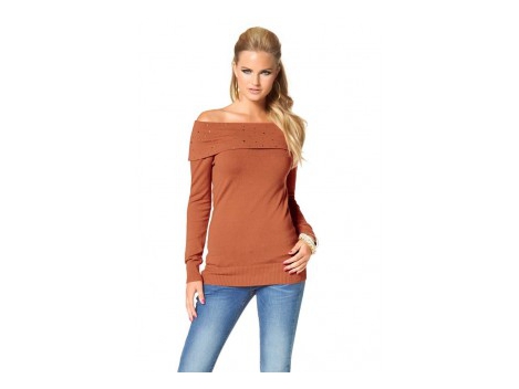 Tiesiog žavinga - Ultra seksualus Karmen palaidinukė Melrose uolų namą! Absoliutus skaičius hugging forma papildyta pagal plataus Carmen iškirpte, kad palieka pečius karšto masinantis nemokamai. Atsižvelgiant į atskirą apykaklės Welt už Glam apdailos liesti su daugeliu blizgus kniedės yra užimtas. Rankogaliai ir Hem baigti su plačiu Doppelrippbündchen. Liemeniu forma. Ilgis apie 60 cm. Maloniai minkštas ploni megztiniai kokybės 70% medvilnė / 30% poliamido.