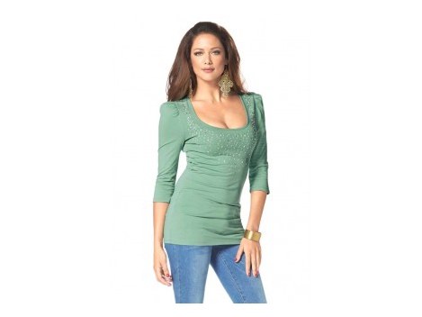 Das Glamour-Basic für lässige, coole oder elegante Outfits! Der Brustbereich ist üppig mit Pailletten besetzt. Süsse, nach unten leicht fallende Form mit verste...