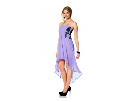 Styling-Queen der Party-Szene. Umwerfend raffiniertes Chiffonkleid in Bandeau-Form mit kontrastfarbener Spitzenapplikation seitlich. Oberteil hinten gesmokt für eine optimale Passform, Rockteil mit modisch asymmetrischem Saumverlauf. Vordere Länge ca. 65 cm, hintere Länge ca. 113 cm, jeweils von der Dekolletékante bis zum Saum. Zarte, leicht transparente Chiffon-Qualität aus 100% Polyester. Blickdichtes Futter aus 100% Viskose.