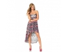 Extravagant und umwerfend in der Wirkung! Toller Allover-Print im Ethno-Look. Abnehmbare und verstellbare Träger, im Rücken gesmoked. Angesagter, modisch provokanter Vokuhila-Schnitt - asymmetrischer Saumverlauf - hinten länger als vorn. Vordere Länge ca. 66 cm, hintere Länge ca. 106 cm, jeweils von der Dekolletékante bis zum Saum. Weich fließende Jersey-Stretch-Qualität aus 95% Viskose/5% Elasthan.