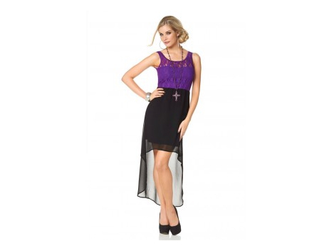 Su šitos kūrinijos yra įtampa ore, nes nėriniai ir šifono pateikiami viliojanti kartu. Įspūdingos elegantiškas suknelė, kuri fiksuoja dėmesį. Viršutinė dalis raudonos spalvos, vien nėrinių su integruotu, nepermatomas bustier. Elastinis juosmuo siūlės. Pataisa, svyruojančios, juoda šifono sijonas su asimetriška - nugaros ilgiau nei priekyje. Viršutinė sijonas pamušalas. Pav hugging formos. Priekinis ilgis maždaug 92 cm. Atgal ilgis apytikriai 133 cm. Chiffon ir elastanas pamušalas pagamintas iš 95% poliesterio / 5%. Didžiausioji iš 100% poliesterio.