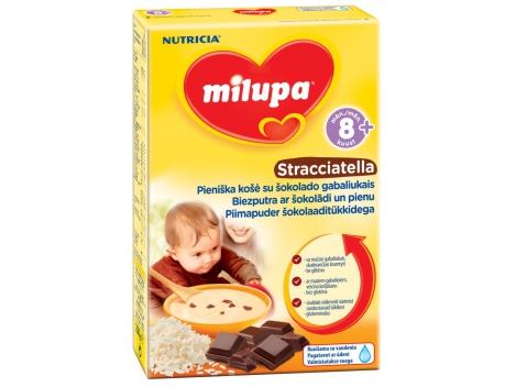 Pirmieji kiekvieno mažylio gyvenimo metai kupini įvairiausių atradimų. Reikia pajusti tiek daug naujų skonių! Šiuo gyvenimo laikotarpiu jam būtinas tinkamai suderintas maistas, aprūpinantis visomis augti reikalingomis maisto medžiagomis ir formuojantis sveikos mitybos įpročius."Stracciatella" – soti pieniška košė pagaminta iš rinktinių grūdų, mažų pieninio šokolado gabaliukų ir tolesnio maitinimo pieno mišinio miltelių. Sudėtyje nėra glitimo. Ruošiama su vandeniu. Sudėtis: rinktiniai grūdai, maži pieninio šokolado gabaliukai, tolesnio maitinimo pieno mišinio miltelia