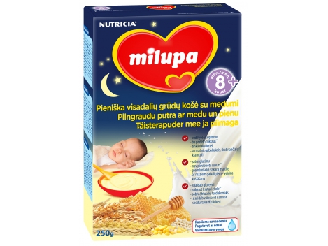 MILUPA pieniška visadalių grūdų košė su medumi nuo 8 mėn., 250g