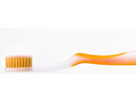Minkštas dantų šepetėlis SU AUKSU Royal Denta Gold Soft, 1 vnt. Minkštas dantų šepetėlis su aukso nanodalelėmis. Skirtas turintiems jautrius dantis.• Puikios antibakterinės savybės. Klinikiniais tyrimais įrodyta, jog šie šepetėliai sunaikina iki 99,9 % visų bakterijų, „susitinkančių“ su šepetėlio šereliais;• Dvejopa šerelių technologija. Viršutiniai ploni ir švelnūs nusmailinti šereliai giliai prasiskverbia į sunkiai įprastais dantų šepetėliais pasiekiamas tarpdančių vietas. Apatiniai suapvalinti šereliai puikiai valo dantų emalį ir jo nepažeidžia;• Dantų valymas šiais šepetėliais gerina kraujo apytaką, masažuoja dantenas, stiprina burnos ertmės atsparumą infekcijoms, palaiko ilgalaikį švaros ir gaivos pojūtį;• Ergonomiškas ir neslidus kotelis pagamintas iš natūralios gumos užtikrina judesių kontrolę valant dantis. Kas yra nano dalelė?Šepetėlio šereliuose esančios sidabro ir aukso nanodalelės yra 5-50 nm (10-9 metro) dydžio. Itin didelis nanodalelių tūrio ir paviršiaus ploto santykis lemia ypatingą nanodalelių aktyvumą, todėl šis unikalus šepetėlis padeda efektyviau nuvalyti net ir sunkiausiai įveikiamas apnašas.Valant dantis paprastu šepetėliu, ant jo šerelių kaupiasi milijonai bakterijų, kurios ardo danties emalį, sukelia dantenų uždegimą. Naudojant šepetėlį su nanodalelėmis, praėjus 2 - 4 val. po dantų valymo, aptinkama iki 99,9 % mažiau bakterijų ant šepetėlio šerelių. Taip pat nanodalelės užpildo mikroskopinius dantų įtrūkimus, švelniai poliruoja danties paviršių, kuris tampa slidus ir nepatogus bakterijoms. Dėl šios priežasties bakterijos nesugeba prisitvirtinti prie dantų, kurie ilgai išlieka švarūs ir blizga.