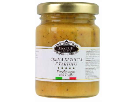 MOLIŪGŲ IR TRIUFELIŲ KREMAS Tartufi Jimmy, 90gTriufelis - prabangusis tradicinės virtuvės karalius!Viduramžių Pietralunga miestelyje, Italijos Perudžos provincijoje įsikūręs Tartufi Jimmy triufelius perka iš vietinių rinkėjų.Triufeliai – reta grybų rūšis, kurių vaisiakūniai randami po žeme. Specialiai šiems delikatesiniams grybams ieškoti dresuojami šunys, kurie išmokomi kasti žemę ten, kur užuodžia triufelio kvapus.Tartufi Jimmy triufeliai kruopščiai atrenkami ir rūšiuojami pagal dydį, formą, spalvą, kvapą,- taip užtikrinamas šviežiausias ir aukščiausios kokybės produktas.Tartufi Jimmy laikosi senovinių triufelių perdirbimo tradicijų ir siūlo sveikų, gurmaniškų produktų su triufeliais.Sudedamosios dalys: moliūgai 57%, bulvės, svogūnai, ypač tyras alyvuogių aliejus, sūris, vasariniai triufeliai (Tuber Aestivum Vitt) 3%, sviestas, druska, prieskoniai, pipirai, rozmarinai, šalavijas.Maistinė vertė 100 g: energinė vertė 259kJ/62 kcal, riebalų 4,49g, angliavandenių 4,51g, baltymų 1,23g.