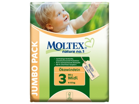PIRKĖJAMS MYLINTIEMS NE TIK SAVO VAIKUS, TAČIAU IR GAMTĄ ;)- 50 proc. gamybai naudojamų žaliavų – iš atsinaujinančių šaltinių.- Viršutinis sauskelnių sluoksnis praleidžia orą ir gamtoje suskaidomas mikroorganizmų.- Be latekso, be sintetinių kvapiklių ir dažiklių.- Be chloro. Celiuliozė, iš kurios pagamintos ekologiškos Moltex sauskelnės, balinamos tausojant gamtą be chloro. Celiuliozė balinama deguonimi ir jos junginiais, tokiais kaip peroksidas ir ozonas. Balinant šiuo būdu (TCF - Totally Chlorine Free) visiškai nenaudojamas chloras ir tuo pačiu mažiau teršiama aplinka.- Sauskelnių pakuotė suyra kompostuojant, nepalikdama kenksmingų medžiagų. Pakuotę galima naudoti pvz. kaip maišelį šiukšlėms sudėti, nes maišelis atsidaro per visą viršų.- Švelnios.- Ant užsegimo lipdukų yra tampri juostelė, tam kad sauskelnės kuo geriau priglustų. Sauskelnės patogios kūdikiui, ant užsegimo juostelės – draugiškų meškučių paveikslėliai.- Su arbatos lapų ekstraktu kuris sugeria nemaloniu kvapusŠios Moltex sauskelnės yra pagamintos iš nebalintos celiuliozės. Dermatologų patikrintos ir priskirtos prie "odai draugiškos" produkcijos.Straipsnis priverčiantis susimąstyti :) http://ekoblogas.wordpress.com/2007/07/08/sauskelnes-ir-ekologija/