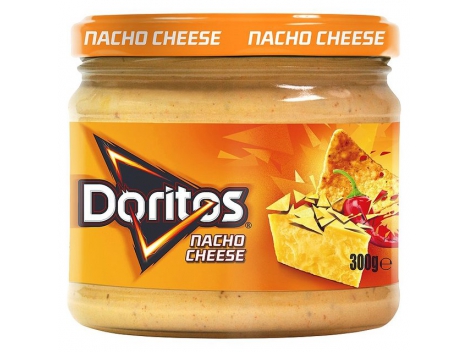 NACHO SŪRIO PADAŽAS Doritos, 300gSudedamosios dalys: vanduo, rapsų sėklų aliejus, grietinėlė (8%), brandintas baltas čederis (5%), balto vyno actas, modifikuotas krakmolas, nugriebto pieno milteliai, cukrus, mielių ekstraktas, druska, džiovinti kiaušinių tryniai, rūgštingumą reguliuojanti medžiaga (pieno rūgštis), česnakų piurė, prieskoniai, stabilizatorius (ksantano guma), dažiklis (paprikos ekstraktas), svogūnai, konservantas (kalio sorbatas).Sudėtyje yra: pieno, kiaušinių.Maistinė vertė 100g: energinė vertė 955 kJ/231 kcal, riebalų 20,2g, iš kurių riebalų rūgščių 3,3g, angliavandenių 8,5g, iš kurių cukraus 3,3g, baltymų 3,4g, druskos 1,03g, skaidulų 0,6g.