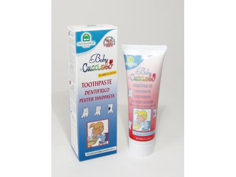 NATURA HOUSE Baby Cucciolo dantų pasta vaikams „Bubble-gum“, 50ml Iš natūralių žaliavų (98,5%) pagaminta dantų pasta vaikams su kalciu veikia antibakteriškai, padeda saugoti nuo uždegimo ir ėduonies, tonizuoja, gaivina. Valymo rezultatas išlieka ilgai.Sudėtis: be emalį žeidžiančių abrazyvinių medžiagų. Sudėtyje yra natrio fluorido - saugo nuo ėduonies, nekenkia dantų emaliui. Sudėtyje esantys alavijų ekstraktai, ksilitolis, kalcis padeda užtikrinti dantų apsaugą nuo ėduonies, stiprinti dantis ir dantenas. Siekiant rezultato, būtina valyti dantis du kartus per dieną, po dvi minutes. Dėmesio! Vienam valymui naudoti tik 0,6 cm pastos! Vaikams iki 6m. naudokite žirnio dydžio kiekį, stebėkite, kad nenurytų. Dėl sudėtyje, esančio natrio fluorido pasitarkite su odontologu ar savo gydytoju.Be parabenų, silikonų, PEG/PPG, SLS/SLES, parafinų.