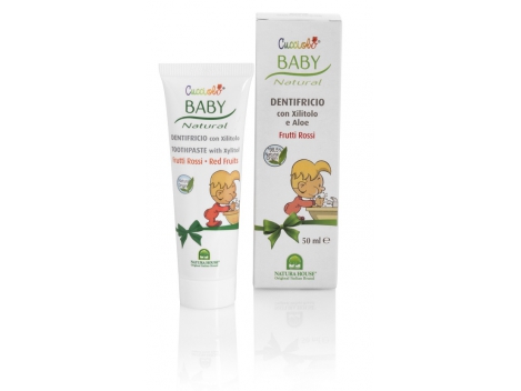 NATURA HOUSE Baby Cucciolo dantų pasta vaikams „Red Fruits“, 50ml iki 6 metų nepalikti vaikų be priežiūros98.5 % natūralių žaliavų!Iš natūralių ekologiškų žaliavų pagaminta “Cucciolo” dantų pasta yra kruopščiai sukurta taip, kad paskatintų net pačius mažiausius vaikus laikytis teisingos burnos higienos, saugo emalį ir dantenas, gero raudonųjų vaisių skonio.Pastoje yra ksilitolio – natūralaus, karieso nesukeliančio saldiklio bei atitinkamas kiekis kalcio ir fluorido druskų: jos padeda apsaugoti dantis nuo ėduonies ir demineralizacijos, o alavijo ekstraktas veikia dantenas drėkinančiai ir ramimai.Pastaba: pastoje yra sodos fluorido 500 ppmF!DERMATOLOGŲ PATIKRINTANATURA HOUSE – jau Lietuvoje!INCI: Sorbitol, Aqua (Water), Hydrated Silica, Glycerin, Xilytol, Aloe barbadensis extract (Aloe vera extract), Aroma (Flavor), Cocamidopropyl betaine, Cellulose gum, Sodium fluoride, Calcium gluconate, Alcohol, Sodium benzoate, Limonene, C.I. 42051.***Besilaukiančioms ir jau maitinančioms mamoms bei kūdikiams sukurta ypač aukštos kokybės natūralios kosmetikos linija „Cucciolo“.• Ant kiekvieno produkto pakuotės nurodomas realus ir visada aukštas (93%- 99.8%) natūralios kilmės medžiagų lygis procentais („Natural origin“ simbolis).• Kosmetikos sudėtyje esančių natūralių žaliavų struktūra artima žmogaus odos struktūrai, todėl priemones oda puikiai toleruoja, matomas produktų efektyvumas;• Be žalingų chemikalų, konservantų, alkoholio, nekenksmingos žmogui (ir, svarbiausia, vaikams bei nėščiosioms) priemonės;• Kosmetikos pagrindas – migdolų, alyvuogių, makadamijos, simonsijų, sviestmedžio aliejai, alavijo gelis.