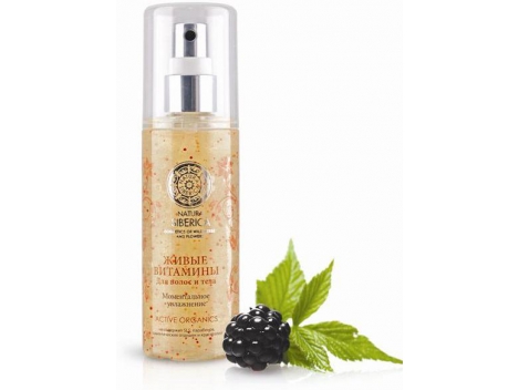 "NATURA SIBERICA" vitaminai plaukams ir kūnui, 125 mlGrožis turi būti natūralus!  Jūsų plaukams ir odai reikalingas drėkinimas ir maitinimas? Išbandykite gyvus vitaminus plaukams ir kūnui — unikalią priemonę, pagamintą šiaurinių uogų, augalų ekstraktų ir vitaminų pagrindu.Gyvi vitaminai akimirksniu maitina Jūsų plaukus ir odą, pripildo juos gyvybinga drėgme, saugodami nuo kenksmingo aplinkos poveikio. Šiaurinės tekšės ir laukinės gervuogės ekstraktai, kurie turtingi vitaminu C, atstato odos ląstelių struktūrą, didindami jos elastingumą. Japoniška akacija — gamtinis rutino šaltinis, aktyvizuoja odos ląstelių atsinaujinimo procesą. Daūrinė rožė, savo sudėtyje turinti B, E vitaminus ir keratiną, atstato plaukų struktūrą, suteikdama jiems stiprumą ir paklusnumą. Sibiro mėlynių ekstraktas grąžina plaukams ryškumą ir žvilgesį.