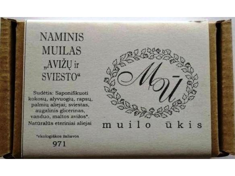 NATŪRALUS MUILAS naminis Avižų ir sviesto, 100g Natūralus, rankų darbo muilas, pagamintas šaltuoju būdu Lietuvos tradicinių amatininkų Sandros ir Mindaugo Makutėnų ekologiniame ūkyje. Pagaminta iš maistinių augalinių aliejų, natūralių eterinių aliejų, tradicinių žolelių ir augalėlių ( ramunėlės, medetkos, beržo lapai ir t.t.) renkamų ūkyje. Muilas puoselėja odą ir kūną, draugiškas aplinkai.NATŪRALUS MUILAS naminis Avižų ir sviesto - skirtas veidui ir visam kūnui įvairaus tipo odai.Smulkintos Avižos kartu su sviestu ne tik padeda muilui plauti jūsų kūną, bet ir maitina bei tausoja odą. Senieji liaudies receptai rekomenduoja avižas odos susirgimams gydyti,sudėtyje esantys eteriniai aliejai turi antibakterinį-antigrybelinį poveikį.Sudėtis: Saponifikuoti* kokosų, alyvuogių, rapsų, palmių aliejai; sviestas, augalinis glicerinas**, vanduo, maltos avižos, natūralūs eteriniai aliejai.* saponifikuoti aliejai reiškia aliejai, tapę muilu.** augalinis glicerinas atsiranda "šaltai" gaminant muilą, papildomai nededamas.
