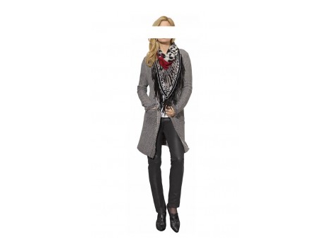 Strick-Chic ganz designerlike - inspirierend und kreativ. Hier stimmt einfach alles von der wohlig wärmenden Qualität bis zum edlen Styling. Mondäner Strickmantel von NICE CONNECTION aus bedrucktem Strick. Außen in Fischgrat-Optik und innen im Karomuster. Der Ausschnitt, der Kragen, die Knopfleiste und die Armsäume sind in Fransen-Optik gearbeitet. Figurbetonte Form. Länge ca. 90 cm. Warme, hochwertige Qualität aus 68% Wolle (Merino)/29% Kaschmir/3% Polyamid.