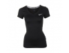 Dopasowana do ciała pierwsza warstwa ubrania z profesjonalnej serii Nike Pro. Bardzo mała objętość sprawia, że Nike Pro świetnie się nadaje jako pierwsza warstwa ubrania tzw. Base Layer. Super lekka tkanina Dri-FIT zapewnia lepszy transport potu na zewnątrz, dzięki czemu materiał nie klei się do ciała. Niesamowita swoboda ruchów dzięki rozciągliwemu materiałowi. Wsparcie mięśni w ich naturalnym ruchu poprzez poprawienie krążenia krwi i tym samym pomoc w usuwaniu produktów kwasowych z mięśni powstałych na skutek wysiłku fizycznego. Szwy w obszarze ramion przeniesiono w obszary mniej narażone na ścieranie i zużycie co podnosi żywotność ubrania, a także zapewnia wysoki poziom komfortu. Zastosowanie tzw. płaskich szwów jeszcze bardziej podnosi komfort i przyjemność użytkowania. Specjalnie wyprofilowane wykończenie w okolicach szyi w celu jeszcze lepszego dopasowania do ciała oraz uniknięcia podrażnień przy wykonywaniu szybkich i nagłych ruchów. Zapewnia dodatkowo wsparcie psychologiczne poprzez bardzo lekki, przyjemny nacisk na ciało, który ma za zadanie niwelować uczucie roztargnienia i niepewności przed startem sportowca.