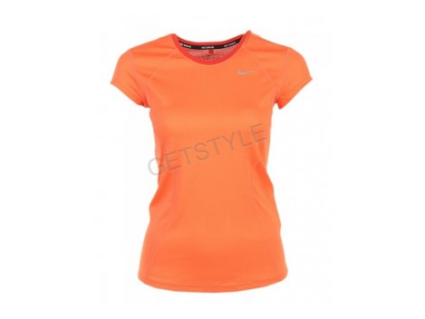 Damska koszulka przeznaczona do biegania firmy Nike. Super lekka tkanina Dri-FIT zapewnia lepszy transport potu na zewnątrz, dzięki czemu materiał nie klei się...
