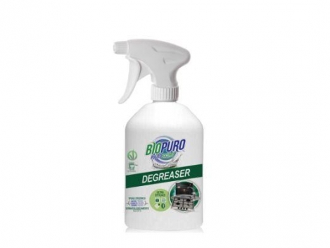 Nuriebalintojas BIOPURO, 500 ml Lengvai šalina sunkiai įveikiamus įsisenėjusius nešvarumus, riebalų apnašas, degėsius ir nemalonius kvapus. Tinka ne tik orkaičių, viryklių, kaitlenčių, kepsninių, keptuvių, gartraukių švarinimui bet ir alyvos, tepalų dėmių valymui garaže ar dirbtuvėse.• Ekologiškumo sertifikatas;• Dermatologų patikrintas; • Hipoalergiškas, atlikti nikelio, kobalto ir chromo testai; • Draugiškas gamtai, pagamintas iš augalinės kilmės žaliavų, biologiškai skaidus; • Netestuotas su gyvūnais; • Sudėtyje nėra gyvulinės kilmės ingredientų; • Perdirbama pakuotė.Naudojimas/rekomenduojami kiekiai: 25 cm atstumu priemonę užpurkšite ant valomo paviršiaus ir išvalykite šluoste ar drėgna kempinėle. Šalinant įsisenėjusius nešvarumus priemonę palikite veikti 5 minutes ir išvalykite paviršių šluoste ar drėgna kempinėle.Pastaba: nenaudokite priemonės aliuminio, lengvai pažeidžiamų ar dažytų paviršių valymui. Sudėtis (reg. 648/2004/ES) - <5 % augalinės kilmės anijoninių ir nejoninių paviršinio aktyvumo medžiagų. Natūralios kvapiosios medžiagos. Detali sudėtis (INCI)- vanduo, alkoholis, natrio metasilikatas, deciloksirano gliukozidas, natrio laurisulfatas, ksantano guma, kvapikliai (augalinės kilmės), apelsinų žievelių eterinis aliejus (ekologiškų ūkių).