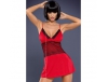 Kobieca koszulka w kuszącym kolorze czerwieni, brązu lub granatu!Miseczki wykończone koronką. Brzuch zasłania piękne koronkowe zdobienie.Model posiada regulowane ramiączka, które zagwarantują idealne dopasowanie głębokości dekoltu. W komplecie seksowne stringi! Skład: 88% poliester, 12% elastan.Uwaga: kolor czerwony - model posiada z tyłu tasiemki wiązane w pasie.