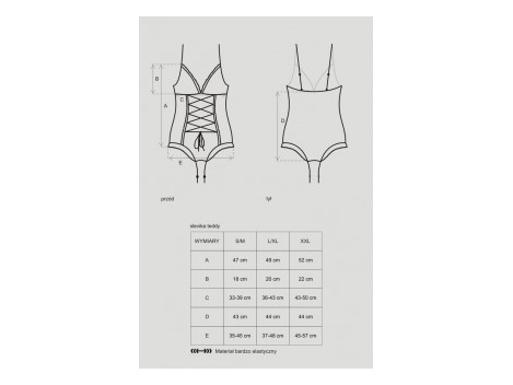 Producent odzieży: ObsessiveMarka odzieży: ObsessiveModel odzieży: Slevika teddyRodzajOferty: Oferta bieżącaNowość: NIEPłeć kupującego: KobietaSkładnik surowcowy: poliamid 82%, elastan 18%,Odpinane ramiączka: NIERamiączka Regulowane: TAKOpisProducenta: Mówią, że marzenia się spełniają. W 100% się z tym zgadzamy, a body Slevika są tego najlepszym przykładem. Pragniesz gorącej atmosfery i wieczoru pełnego uniesień? Szukasz czegoś nowego? Proszę bardzo! Poczuj na swojej skórze delikatny materiał, zwróć uwagę na fantastyczne sznurowanie i pikantne rozcięcie w kroku. Zaskocz go!Goooorące szczegóły Slevika teddy:- koronkowe body w kolorze głębokiej czerni- kwiatowy motyw – kwintesencja kobiecości!- miękkie miseczki świetnie uwydatniają biust- regulowane ramiączka – idealne dopasowanie- pionowe przeszycia podkreślają talię- z przodu kuszące, satynowe sznurowanie- delikatne, koronkowe wykończenia – perfekcyjne detale!- pikantny, otwarty krok- elastyczny, przyjemny w dotyku materiałSkład: 82% poliamid, 18% elastan.