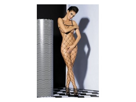 Zniewalające bodystocking wykonane z elastycznej ażurowej siatki. Prosta forma jest niezwykle kusząca a charakterystyczną cechą tego modelu są duże oczka typu kabaretka, które kontrastują z ciałem przykuwając spojrzenie. Kreacja spowija całą sylwetkę, śmiało ukazując piękno kobiecego ciała. W kroku pikantne rozcięcie. Tkanina: 90% nylon, 10% elastan.