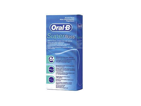"ORAL- B" Super floss dantų siūlas pastorintu galu, 50vntOral-B Super floss idealiai tinka plokštelėms, dantų tilteliams ir tarpdančiams valyti. Visi trys unikalūs komponentai – standus galiukas, korėtas ir įprastas siūlai – dirba kartu maksimaliam valymo rezultatui pasiekti.Produkto savybės:Standus siūlo galiukas leidžia valyti po įvairiais ortodontiniais įtaisaisKorėtasis siūlas išvalo ortodontinius įtaisus ir tarpdančiusJei nuolat valysite dantų siūlu, pašalinsite dantų apnašas nuo dantenų linijosVienoje dėžutėje yra 50 įkirptų juosteliųMėtų skonio.