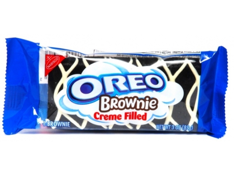 OREO ŠOKOLADINIS PYRAGAITIS, 85gSudedamosios dalys: Oreo šokoladiniai sausainiai [balinti ir nebalinti praturtinti miltai( kvietiniai miltai, niacinas, gelezis, tiamino mononitratas {vitaminas B1}, riboflavinas {vitaminas B2}, folio rūgštis), cukrus, rapsų ir/arba palmių ir/arba sojos pupelių aliejus, kakava (apdorota šarmu), daug fruktozės turintis kukurūzų sirupas, tešlos kildymo medžiaga (kepimo soda ir/arba kalcio fosfata), druska, emulsiklis (sojos lecitinas), šokoladas, kvapioji medžiaga (vanilinas)], nebalinti praturtinti miltai ( kvietiniai miltai, niacinas, geležis, tamino mononitratas (vitaminas B1), riboflavinas (vitaminas B2), folio rūgštis), palmių aliejusm sojos pupelių aliejus, kukurūzų sirupas, fruktozė, kalcio karbonatas (kalcio šaltinis), glicerinas, kiaušinių baltymai, nugriebtas pienas, kakava (apdorota šarmu), pakmių branduolių aliejus, šokoladas, emulsiklis (sojos lecitinas), kukurūzų krakmolas, pienas, kepimo soda, druska, dirbtiniai dažikliai, dirbtiniai skoniai.Sudėtyje yra: kviečių, solos, kiaušinių, pieno.Maistinė vertė 85g: energinė vertė 370kcal; riebalų 140g, iš kurių sočiųjų riebalų rūgščių 16g; angliavandenių 52g, iš jų cukrų 28g; baltymų 4g; natrio 310mg.